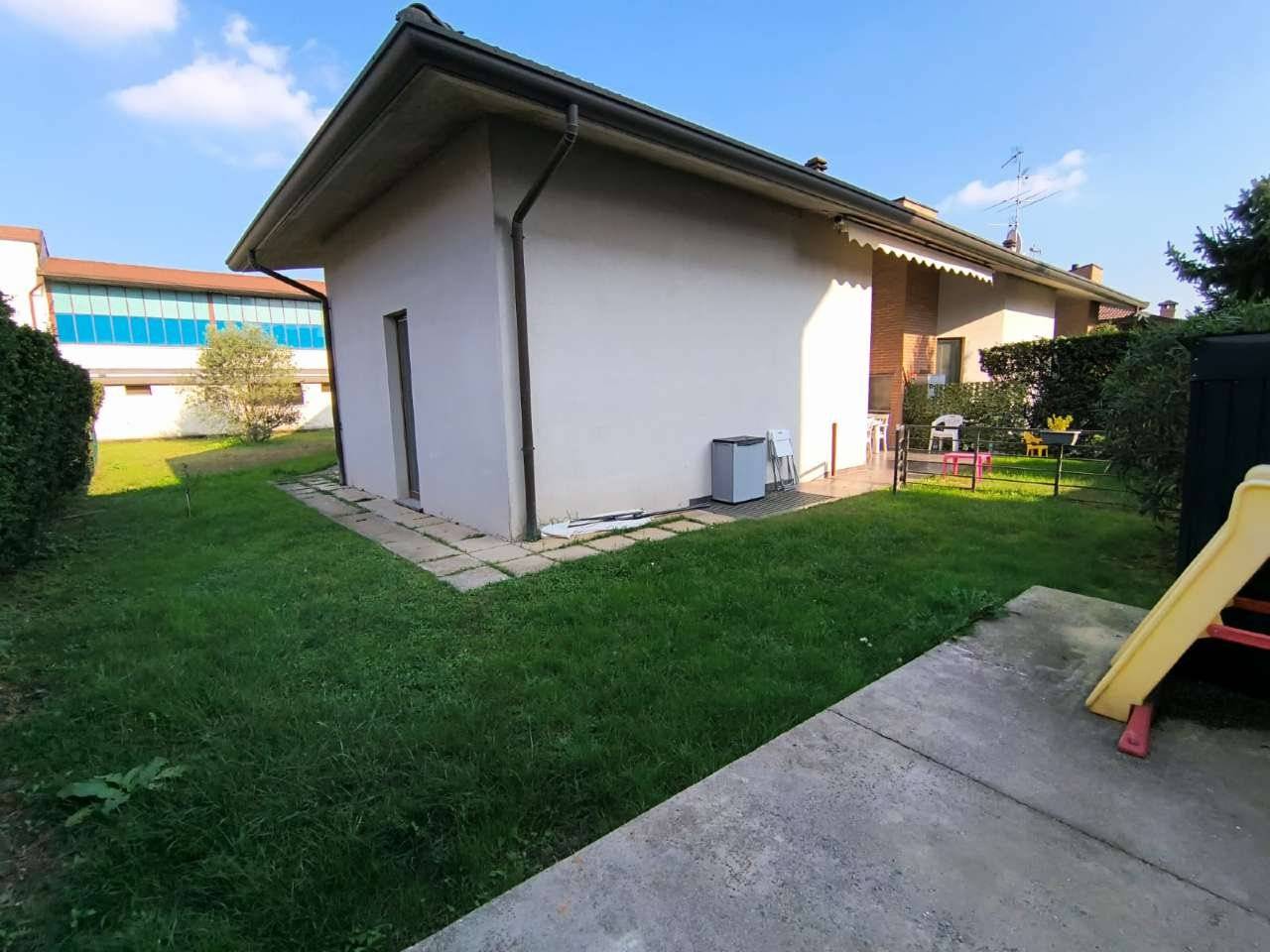 Per chi ha il pollice verde e cerca un vero giardino, in posizione centrale defilata in prossimità delle scuole, perfetta porzione di villa bifamiliare libera sui tre lati posta su un lotto di terreno di c.a. 500 m² completamente pianeggiante. Realizzata interamente in calcestruzzo armato e pareti in paramano, con gronde sporgenti , canali in rame ed ampi porticati, già rivestita con cappotto termico e ora completa di impianto fotovoltaico di 6 Kw con 5 Kw di batteria di accumulo. Disposta su un piano abitativo di oltre 80 m² con un classico ingresso, un soggiorno , con un'ampia vetrata scorrevole e sbocco sul giardino, che trova una parete tv servita da una canna fumaria che permette, agli appassionati della fiamma, di allestire un vero camino a legna piuttosto che una stufa a pellet . Ancora una la sala da pranzo distinta dalla cucina abitabile ed entrambe con sbocco sul patio esterno coperto dal profondo ed alto porticato con affaccio interno e sempre discreto, dove allestire il tavolo ed il BBQ. Ancora, sul piano una prima zona notte disimpegnata composta da una grande camera matrimoniale ed un bagno padronale. Il piano mansarda è di c.a. 50 m² è composto da due camere, una con balcone, ed un bagno con doccia. Il piano interrato, che intero misura 80 m², offre un grande spazio open di c.a. 50 m² dove troviamo la grande taverna con cucina attrezzata, con bocche lupaie che garantiscono sempre una buona illuminazione ed una perfetta areazione. Ancora un bagno completo, un locale lavanderia distinto, ed una centrale termica. Comodissima la comunicazione diretta al doppio box in larghezza. Nuovi i serramenti in alluminio a taglio termico e nuova la caldaia a condensazione appena montata. Immobile in ottime condizioni. Pronto per essere subito abitato.