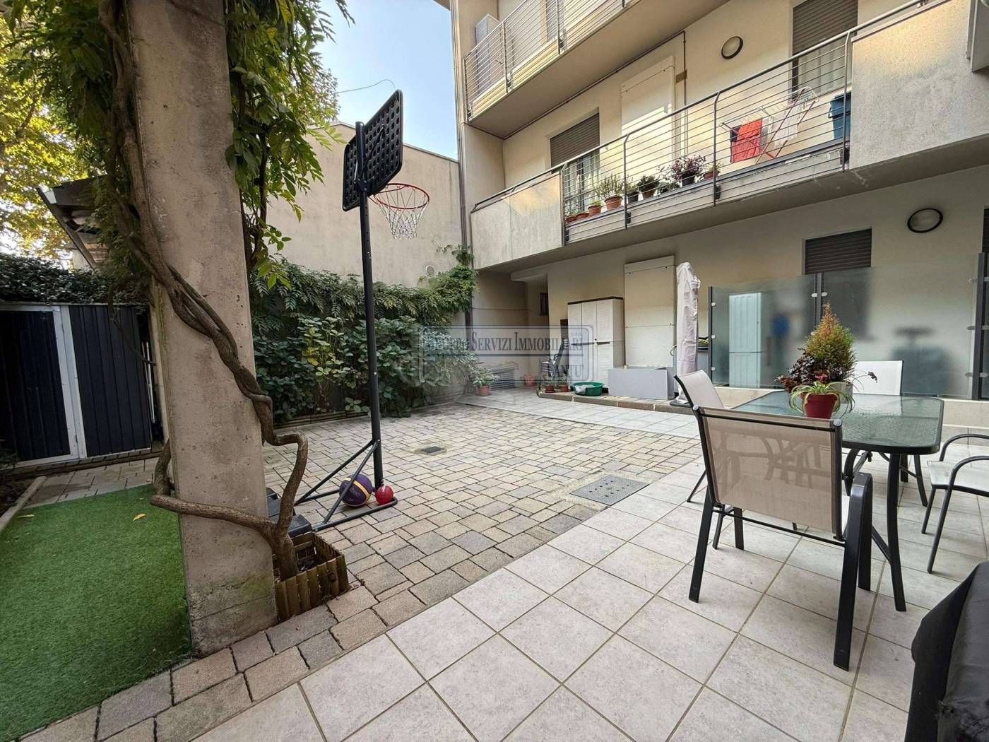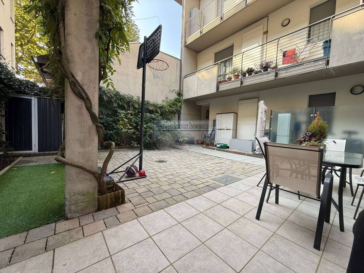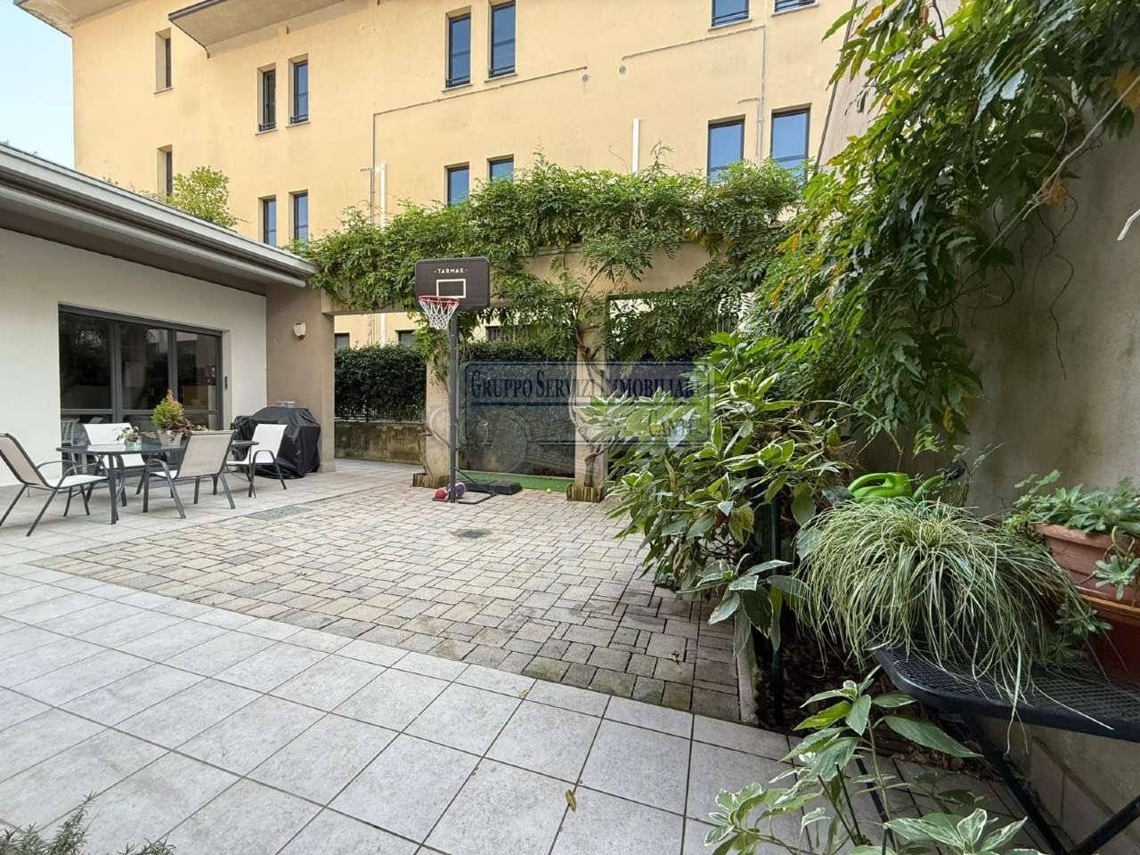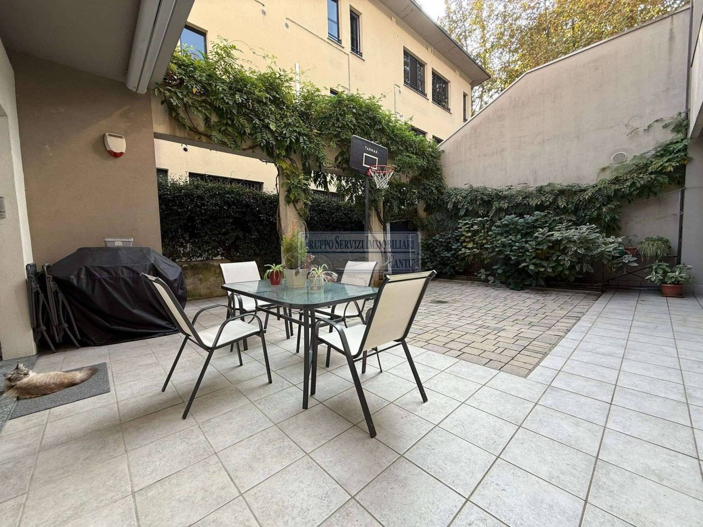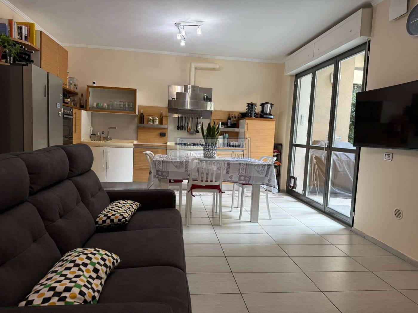 Nella centralissima viale Madonna, l'unica via alberata in Cantù, dove si trovano tutti i capolinea dei bus con direzione Mariano, Monza e Como, di fronte all'asilo nido, alle scuole primarie e secondarie ed al liceo, in una piccola e recentissima palazzina Edificata in Classe B, introvabile soluzione a piano terreno con ingresso indipendente di 4 locali doppi servizi con oltre 80 m² di area esterna cintata in proprietà, nata come giardino, oggi interamente pavimentata a terrazzo. Riscaldamento a pavimento, autonomo con caldaia a condensazione collegata ad un impianto privato di pannelli solari per la produzione di acqua calda sanitaria. Libera sui tre lati con serramenti in legno a vetrocamera e tapparelle motorizzate, con ventilazione meccanica puntuale nella zona giorno, e l'intero appartamento climatizzato con un impianto canalizzato. L'accesso si ha dal cancelletto privato e da un corridoio coperto che ci proietta subito sull'intera area in proprietà dove trova spazio sia il tavolo esterno e l'angolo BBQ, per il papà e la mamma, sia il canestro per i ragazzi. La zona giorno è interamente esposta a sud con una ampia vetrata che ci collega al terrazzo esterno, dove troviamo subito la zona tavolo BBQ protetta da una tenda motorizzata. Disimpegnata una prima zona notte composta da una camera allestita con un lettone ad una piazza e mezza ed un bagno padronale con vasca. Perfettamente disimpegnata una seconda zona notte dove troviamo due camere ed un bagno, anch'esso finestrato e allestito con doccia e lavanderia. Questa soluzione è priva di barriere architettoniche. Possibilità di abbinare una box doppio al prezzo aggiuntivo di Eu.. 25.000.