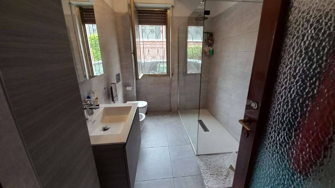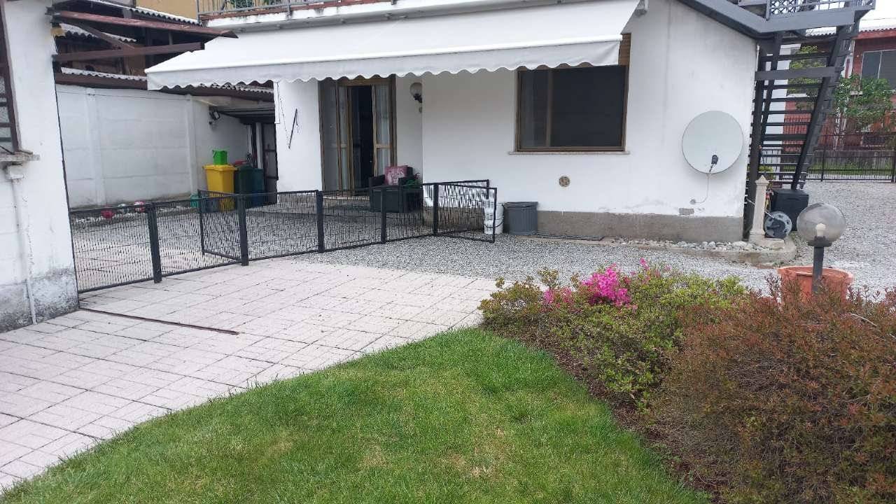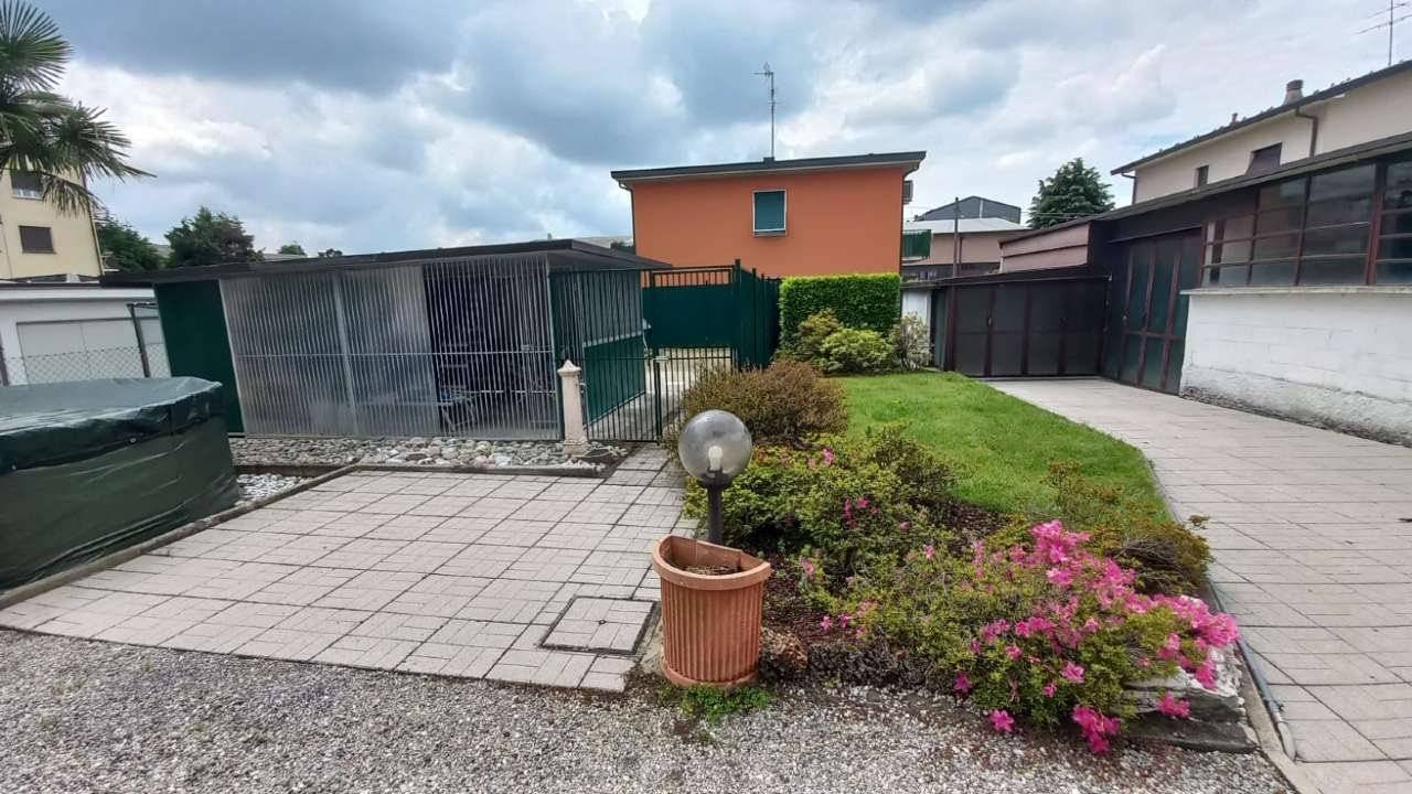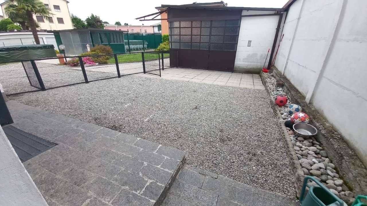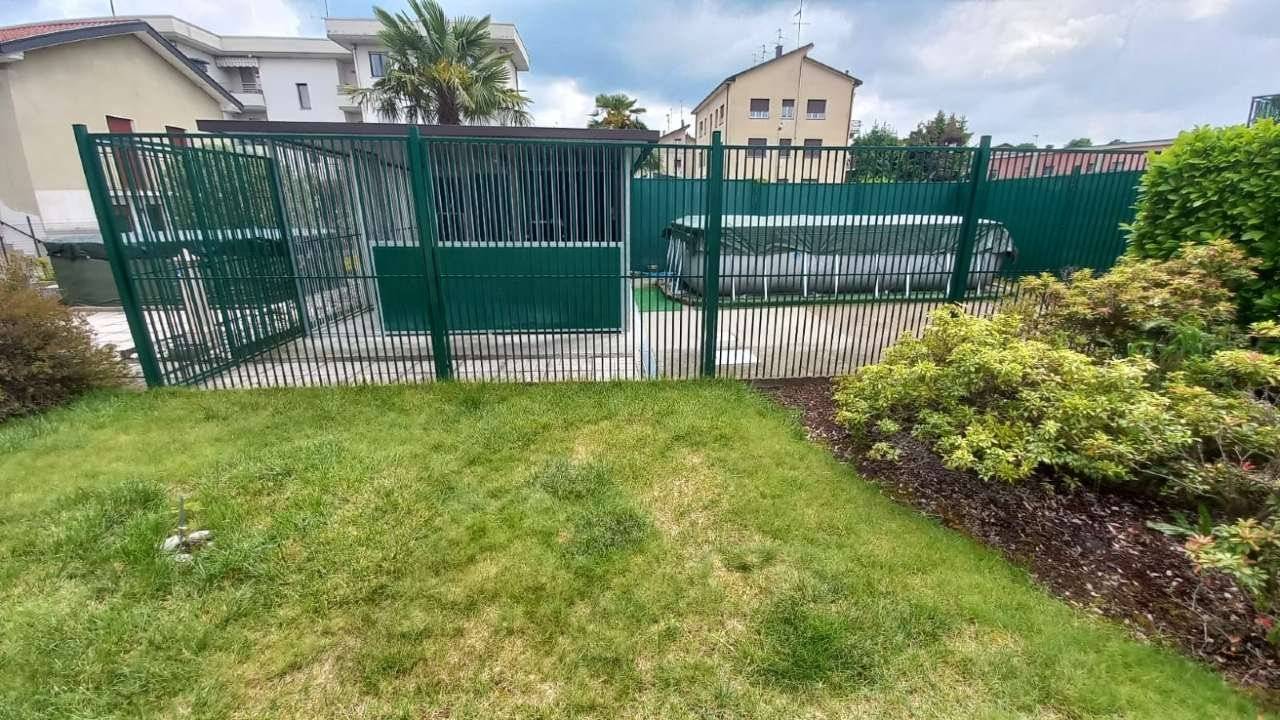 In casa singola di sole due unità immobiliari, perfetta soluzione a piano terreno-rialzato composta da ingresso, due ampie camere matrimoniali con sbocco sul balcone, grande la zona giorno , tutta esposta a sud, dove si distingue il salone con camino a pellett, dalla cucina abitabile con sbocco sull'esterno su area di proprietà, grande il bagno appena rifatto con doppia doccia ed ancora lavanderia separata, cantina per i vini, locale caldaia e, al piano solaio 2 locali accessori con bagno finestrato. Il box di 35 m² ed ancora 120 m² di giardino privato oggi attrezzato con recinto per i cani. Soluzione già ristrutturata pronta per essere subito abitata. Perfetta l'area esterna per pranzi in compagnia coperta dal tendone motorizzato. No spese condominiali. Tetto rifatto. Ideale per chi deve gestire anche grossi cani, o per chi vuole solo allestire la piscina per grandi e piccini. Riscaldamento autonomo No spese condominiali.