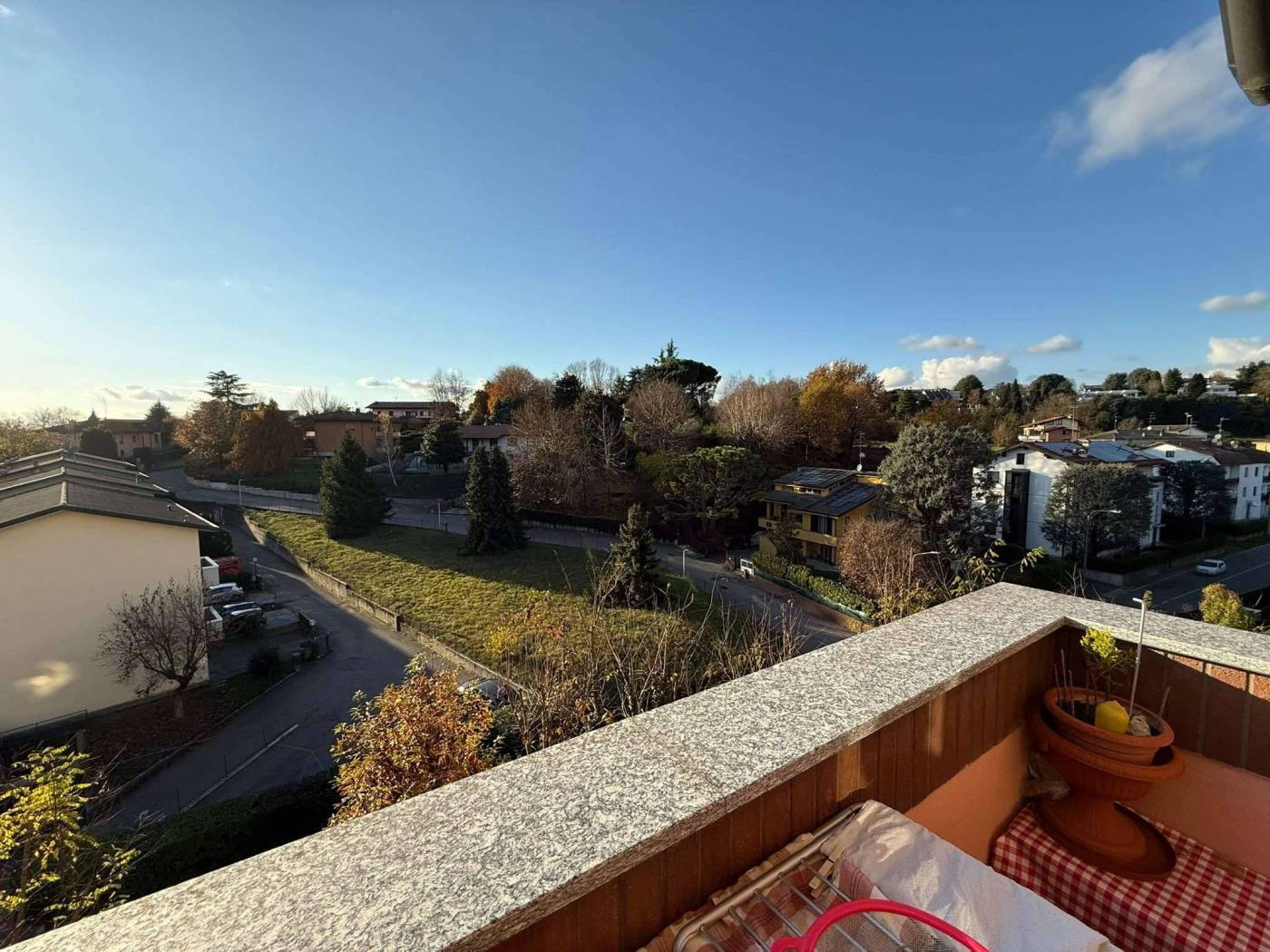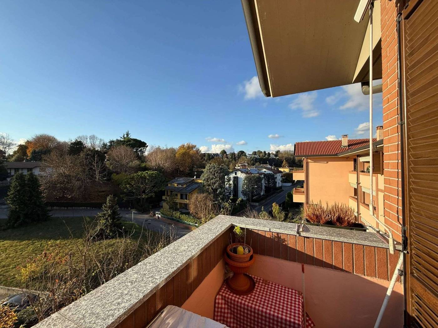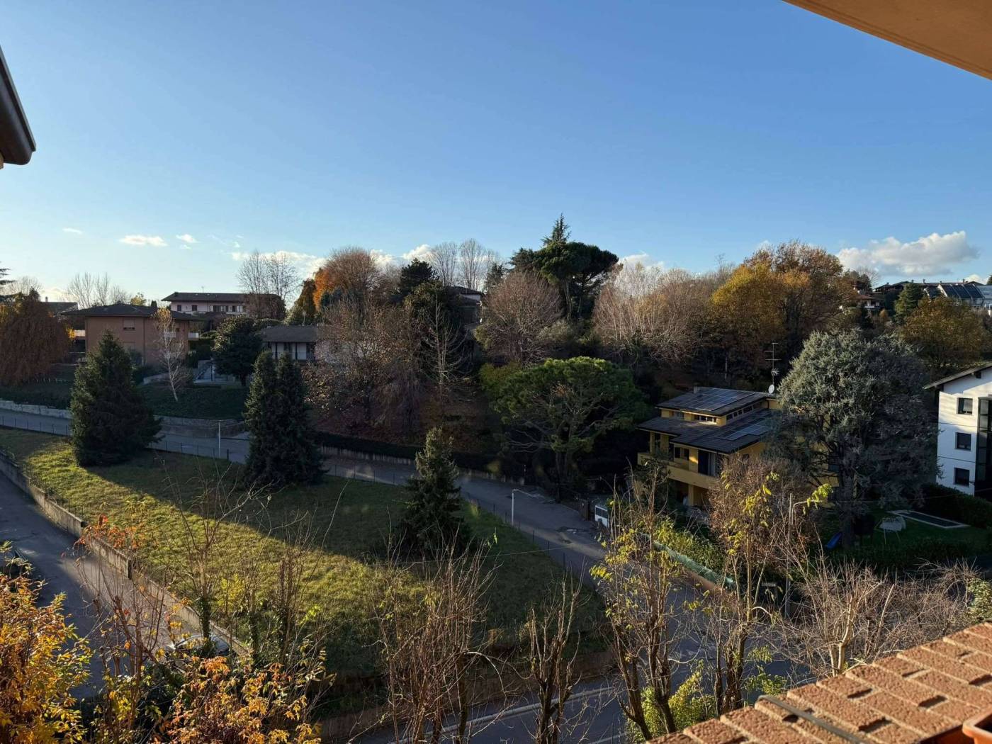Proprio In cima alla collina, zona brugnola, con accesso dalla strada pubblica a fondo cieco, in recente palazzina di soli due piani, perfetto ultimo piano con ascensore di tre locali e doppi servizi, due balconi, cantina oltre ad un lungo e largo doppio box con basculante motorizzata. Vista incantevole sulle colline di Cantù, sempre libera sul verde circostante, con esposizione sud-ovest. Strada a fondo cieco, in uno dei punti più alti di Cantù, proprio sopra le scuole di via Daverio ed il parco pubblico del carroccio