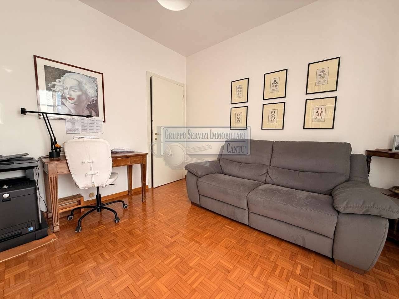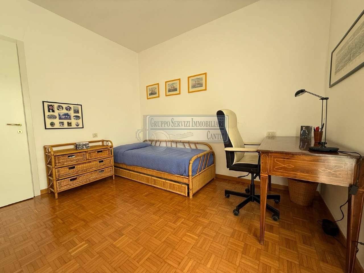 Rif: LA QUIETE - In una delle zone più alte e tranquille di Rebbio, di fatto già all'interno del Parco della Spina Verde, inserito in un contesto residenziale, di poche unità, proponiamo ampio e luminosissimo quadrilocale con doppi servizi, box, cantina e posto auto. In questa piccola palazzina dei primi anni '70, con ascensore, interamente realizzata in calcestruzzo armato a vista, la soluzione, posta al piano intermedio, gode di una ottima esposizione libera sui tre lati, est-sud Ovest e risulta essere straordinariamente luminosa. Classico l'ingresso che ci accoglie in modo armonioso in casa. La cucina è separata con sbocco sul balcone, perfetto anche per accomodare, sempre in modo discreto, tutti i bidoncini della differenziata. Un grande salone, con doppia esposizione, permette di distinguere la zona pranzo dalla zona salotto tv e trova sia l'uscita sul balcone, sia una grande vetrata con affaccio diretto sul parco della spina verde, dove non è un caso scorgere gli scoiattoli saltare da un ramo all'atro delle piante circostanti. Un favoloso corridoio, ampio da poter contenere due grandi armadi guardaroba, consente di organizzare e contenere tutto ciò che serve nella vita quotidiana senza rinunciare all'ordine e ci introduce nella zona notte che trova tre camere matrimoniali e rende, questa, una soluzione estremamente funzionale per famiglie numerose. Due sono i bagni entrambi finestrati, uno attrezzato con doccia e lavanderia l'altro attrezzato con vasca. L'appartamento è stato oggetto di interventi sia di efficientamento energetico sia di ammodernamento estetico. Nuovi tutti i cassonetti, tapparelle e serramenti realizzati in pvc a tenuta certificata e tutti con doppia apertura a vasanta. I bagni sono stati completamente rifatti negli ani 90 come anche tutte le porte interne oggi laccate bianche. Originale il parquet in tutti i locali in classica intramontabile essenza rovere, sempre elegante. Compreso nella vendita un box auto, una grandissima cantina. Ancora, una stanza condominiale destinata al ricovero delle biciclette, ideale per chi ama vivere il parco e muoversi all'aria aperta. Qui è anche riposto il tavolo con il BBQ per le grigliate in compagnia nel verde comune. Questa è l'armonia che si respira in questo piccolo complesso residenziale. E' possibile parcheggiare la seconda auto all'interno della proprietà.